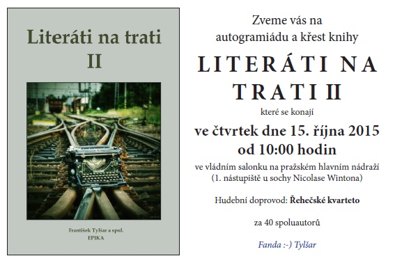 povolanou. Dříve, než zvednul symbolickou výpravku v podobě šumivého vína, zavzpomínal na to, jak se před dvěma roky setkal s Františkem Tylšarem, který se mu svěřil, že by rád vytvořil knihu, jejíž autoři by byli z prostředí železnice. I o tom, jak byl mile překvapen, když rok nato byla kniha na světě. Letošní nárůst počtu autorů, při udržení podstaty projektu, už považuje téměř za zázrak. Popřál knize i autorům, aby nezůstali u čísla dva, protože i trojka je hezká číslice.